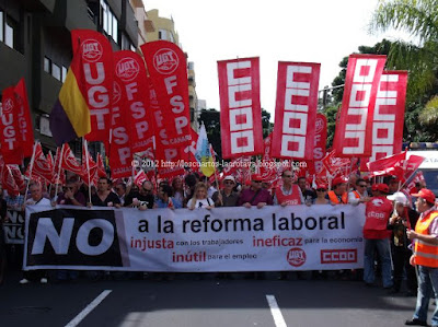 Estas fotografías corresponden a la manifestación celebrada en Santa Cruz de Tenerife el día 29 de marzo de 2012, CONTRA LA REFORMA LABORAL. Se calcula que fueron más de 50.000 personas las que participaron en esta convocatoria que coincidió con el día de HUELGA GENERAL. Un día histórico para TENERIFE.